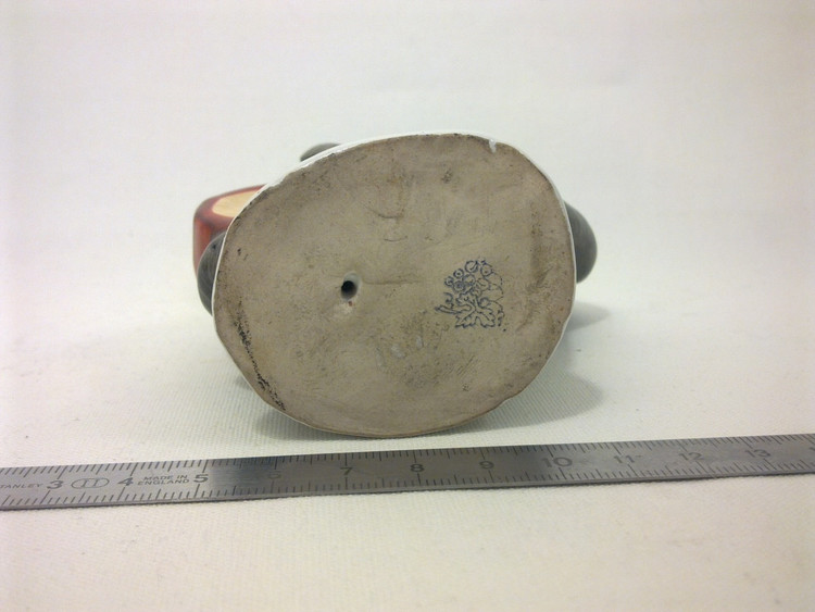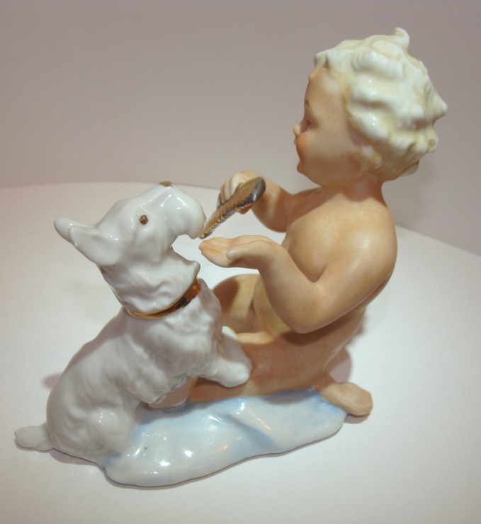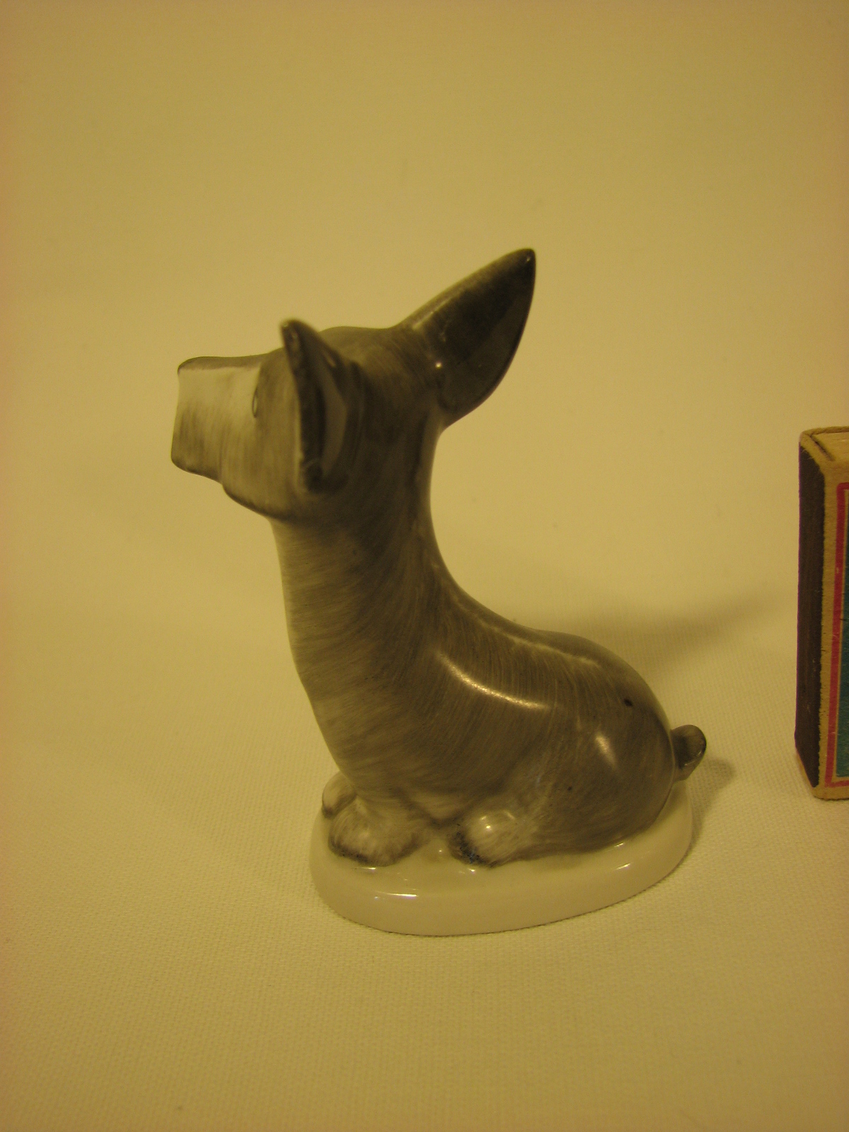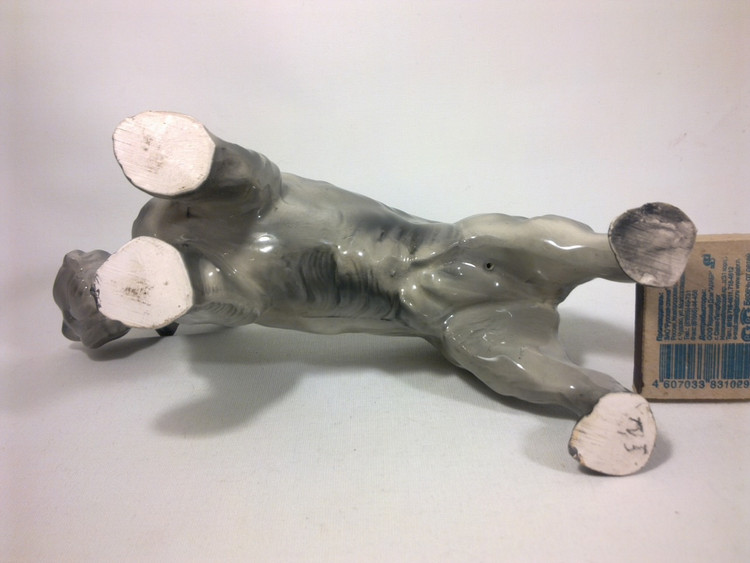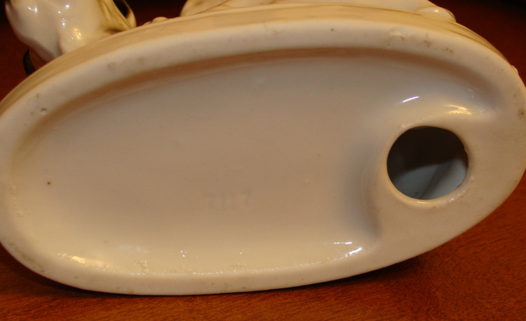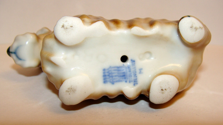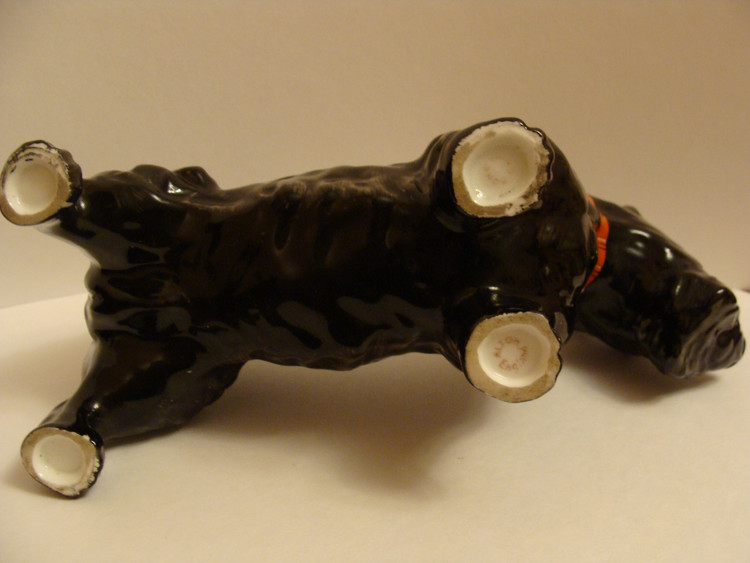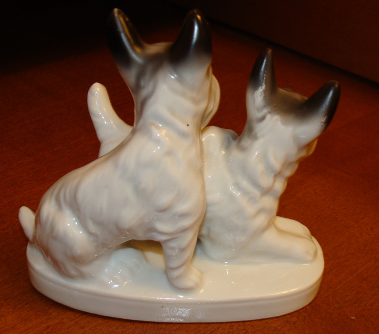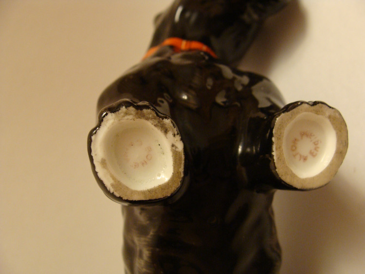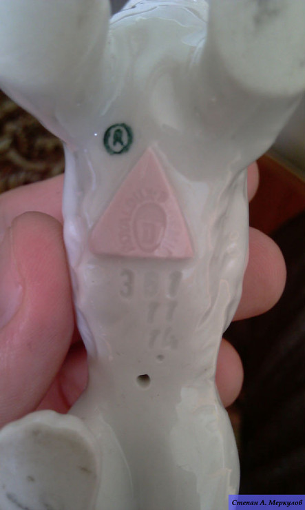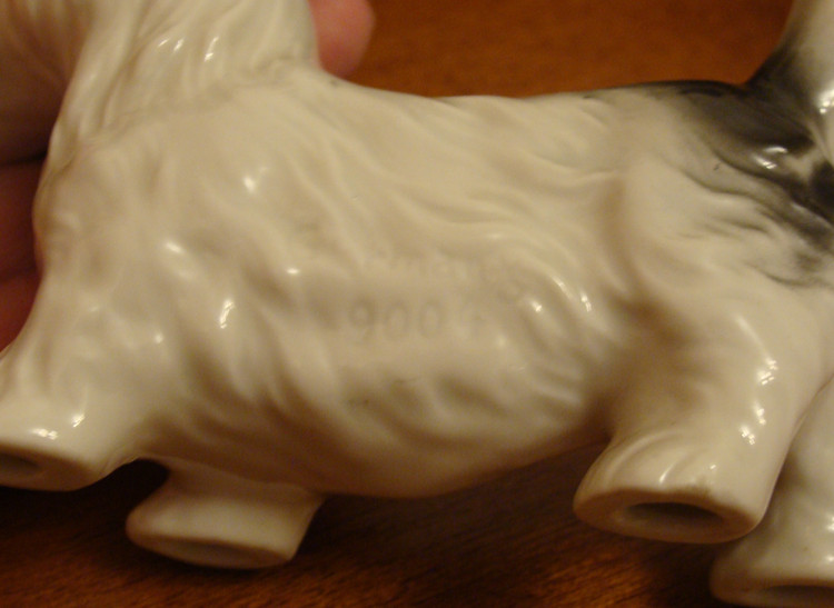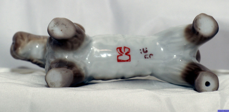 Предполагаю, что фигурка является повторением Модели скотча выполненного Теодором Кернером для Розенталя, выставлена была в витрине филиала Rosenthal Эриха Гелднера на Одеонсплац в Мюнхене, оформленн ой к 50-летию Теодора Кернера в 1934 году. http://www.allach.ru/images/stories/allach/article/repit/Karner-50-years.jpg Данная фигурка является повторением Розенталевского скотчика, выполнена скорее всего в год приобретения (2010г) на ROYAL DUX BOHEMIA. Производство известно с 1853 года, пережив множество слияний и продаж завод входит в состав Королевской фарфоровой мануфактуры DUX Чехии, занимает одно из ведущих мест в производстве высокохудожественных статуэток и анималистических фигур. С 1900-го года датируется использование традиционного способа маркировки – из розовой массы изготовленные приложенные треугольные знаки с надписью «ROYAL DUX BOHEMIA» и желудем с буквой Е внутри. С 1860 года до Второй мировой войны - Е (Eichler). Но после объединения в 1947 году завода ROYAL DUX с Eichwald Porcelain , Stove Factory, и Count Thun Porcelain Factory в Духцовскую мануфактуру производство стало использовать букву D внутри желудя . Этот способ маркировки применяется до сих пор.на духовском фарфоре всегда стоит розовый треугольник с фиксированным размером 12,5 мм сторона треугольника и 1,5 мм высота. После второй мировой войны появилась буква D - (Duchov). В этот же период появляется буква М. В книжке одной прочитал, что марка "Made in..." штамповалась чёрным, голубым или темно-зеленым цветами. В 1992 году была Духцовская мануфактура переименована на «Фарфоровая мануфактура Роял Дукс Богемия, А.О.» и стала опять самостоятельным акционерным обществом аж до 1997 года, когда в рамках объединения капитала стала членом группы «Чешский фарфор». информ.: http://translate.googleusercontent.com/translate_c?hl=ru&sl=en&u=http://www.collectorscircle.com/bohemian/porcelain/marks_table2.html&prev=/search%3Fq%3DPottery%2BMarks,%2BMakers%2BMarks,%2BPorcelain%2BMarks%26hl%3Dru%26sa%3DG&rurl=translate.google.com.ua&usg=ALkJrhi-P0zV7ONN0XKNpM0K_lC_7OJm3Q