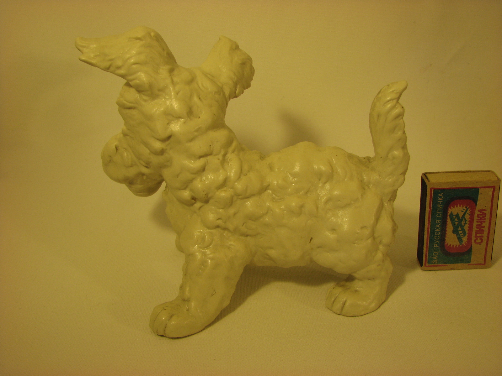 Размеры: Высота 4см Длина 6,5см Вес: 20г Прекрасная фарфоровая фигурка лежащего Скотч-Терьера. Автор статуэтки Болунова Галина. Фотография не может передать всю красоту и изящество статуэтки. Все фигурки «Сциталис» вручную расписаны и поэтому каждая фигурка индивидуальна и неповторима. Покрытие специальной глазурью защищает их от времени и внешних воздействий. На нижней части стоит штамп в виде стилизованной под дракона буквы «С» - символа фирмы. На очень маленьких фигурках штамп может отсутствовать. Цвет может варьироваться. О компании «Сциталис» - астраханская фирма, производящая фарфоровые статуэтки и сувениры, на сегодня ассортимент насчитывает более 200 наименований. Фарфоровые эксклюзивные сувениры «Сциталис» представлены несколькими направлениями: от забавных фигурок собак и кошек различных пород до оригинальных изделий на морскую и речную темы, а также колокольчиками и копилками. Коньком, несомненно, являются фарфоровые рыбы. Отлично изготовленные и красиво расписанные керамические фигурки составят честь любой коллекции, станут прекрасным подарком любителям и владельцам животных, или станут отличным украшением интерьера. Изделия изготовлены из фарфора по уникальной технологии с применением высокотемпературного (1200°С) декорирования подглазурными пигментами и специальными растворами. Глазурь не содержит окислов свинца и других вредных компонентов. Изделия «Сциталис» пользуются популярностью в нашей стране и за рубежом. И являя прекрасное качество продукции, «Сциталис» не имеет конкуренции по доступности цены своих изумительных фигурок. Неизменным остается только прекрасное качество астраханского фарфора. Все изделия проходят полный цикл дообжиговой ручной обработки. В результате каждое изделие индивидуально и неповторимо. Красота, рожденная в огне, сохраняет нежность рук мастеров и огонь их сердец навсегда.